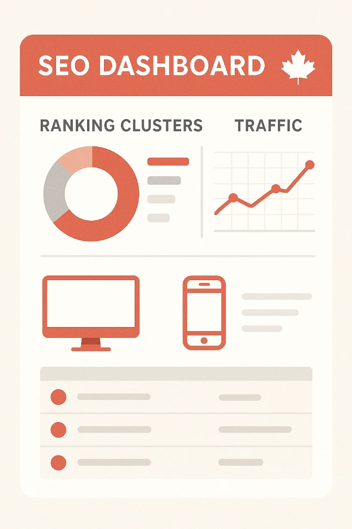 We combine technical optimization, competitor research, content improvements, local SEO, and high-quality link building tailored for the Canadian market.